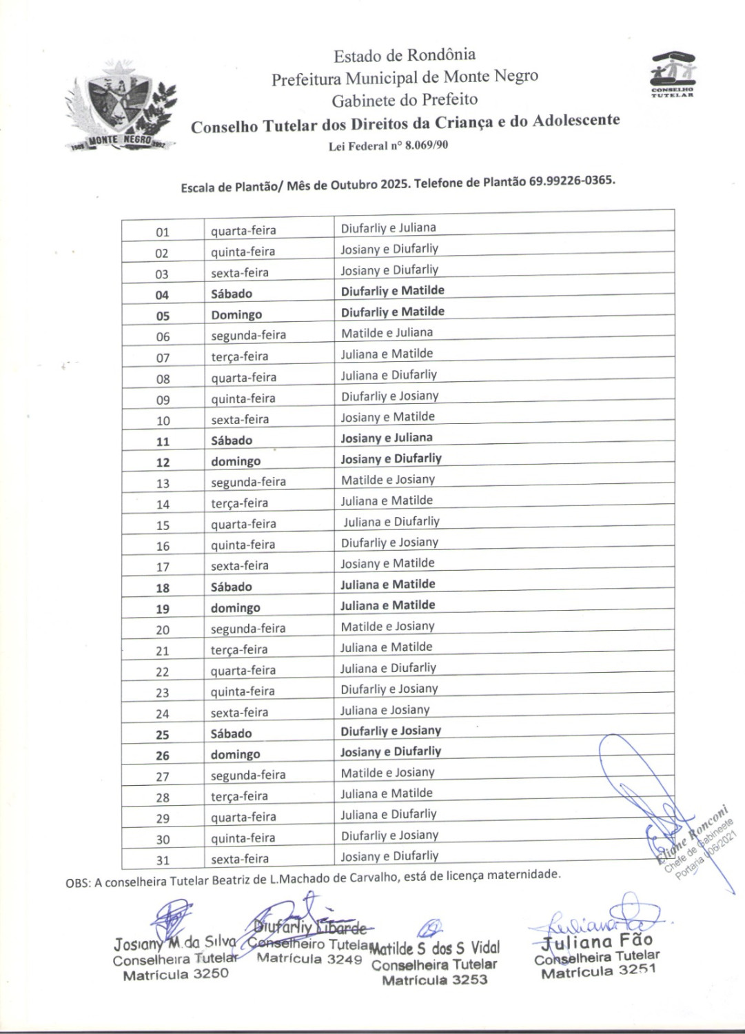 ESCALA DO CONSELHO TUTELAR DE OUTUBRO
