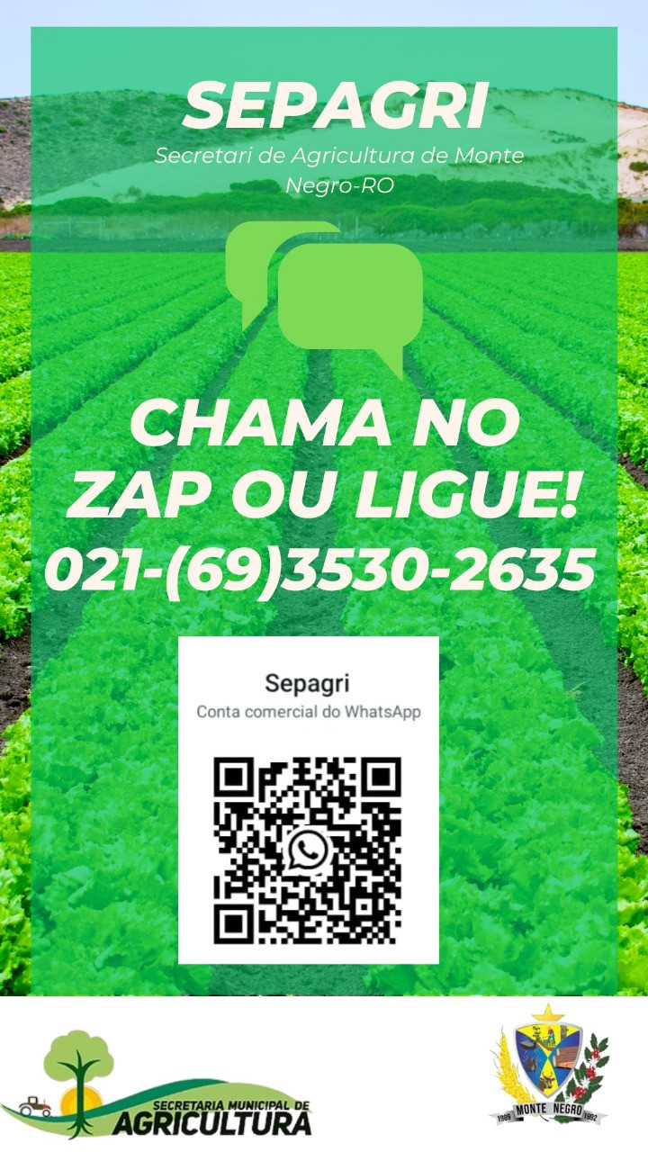 A Secretaria Municipal de Agricultura (SEPAGRI) de Monte Negro-RO agora oferece um canal direto de comunicação para atender agricultores, produtores rurais e a comunidade em geral.