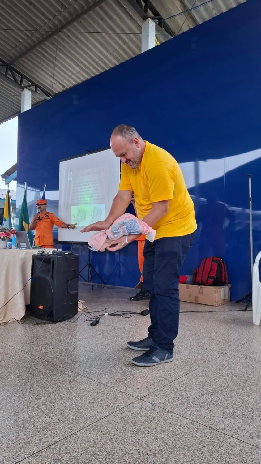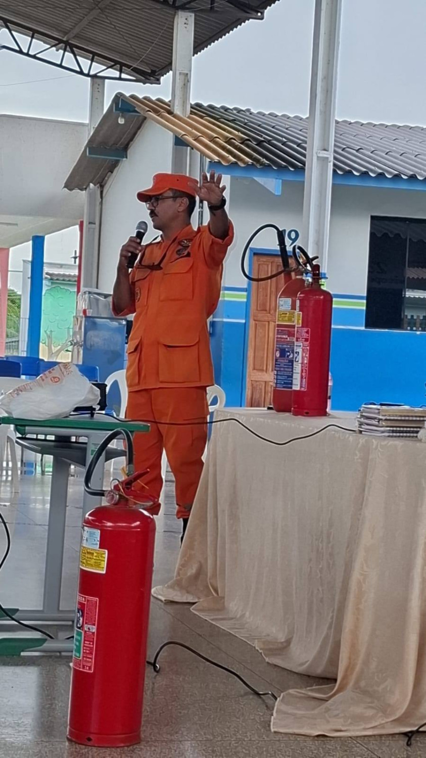 A Secretaria de Educação contou com apoio do Sebrae para uma palestra com o tema "Saúde mental e bem-estar, cuidando de quem cuida" e, na sequência, após um delicioso coffee break, houve a participação dos oficiais do Corpo de Bombeiros para ministrar o tema, Primeiros Socorros, Incêndio e uso dos extintores nas escolas.
