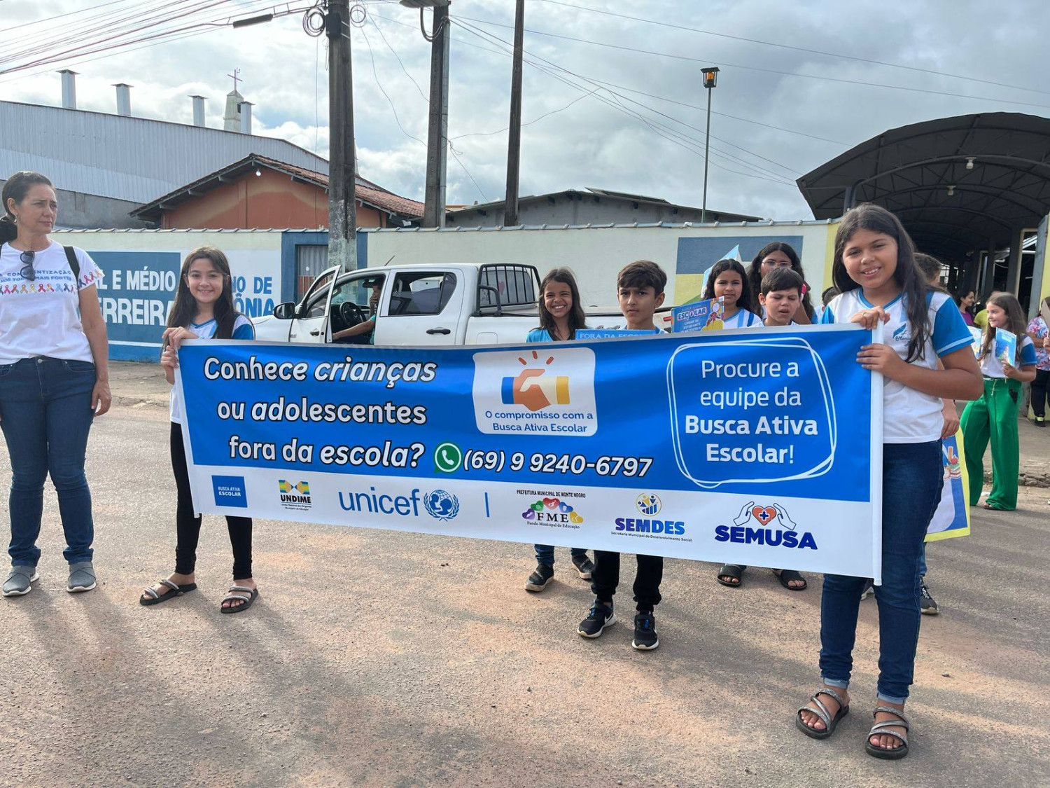 No dia 10 de abril, as escolas, EMEF Maria de Abreu Bianco - Maria Bianco, EEEFM Aurélio Buarque de Holanda Ferreira e EEEFM Mato Grosso, mobilizaram-se em uma caminhada pelas principais ruas de Monte Negro, no Dia "D"da Busca Ativa Escolar!