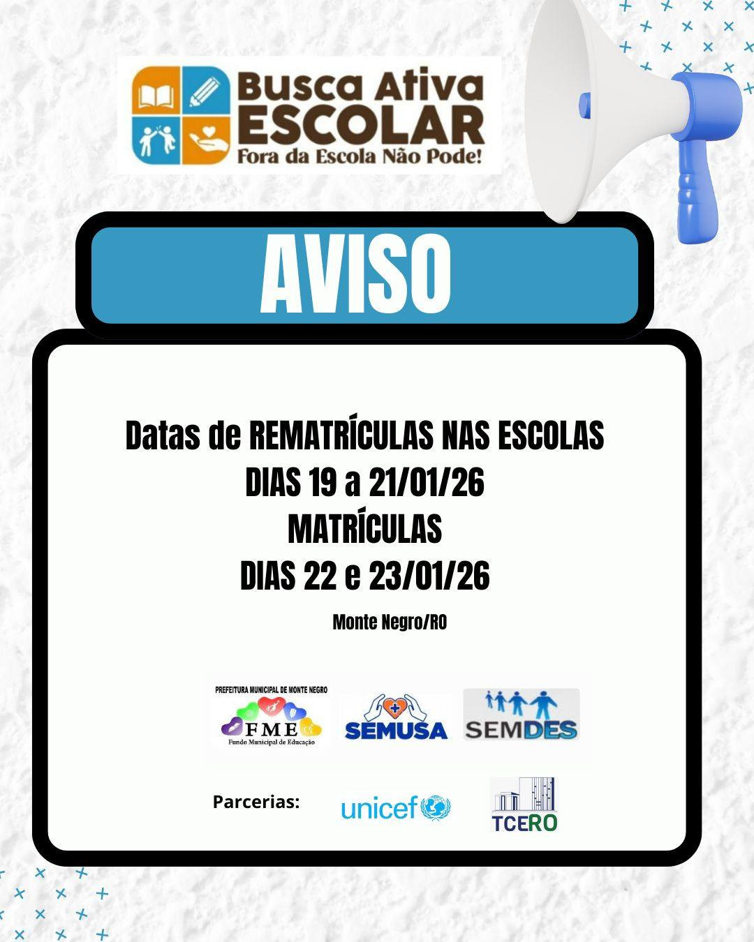 A Prefeitura Municipal de Monte Negro, por meio da Secretaria Municipal de Educação (SEMEC) e em parceria com o UNICEF, reforça o compromisso com o direito constitucional à educação.