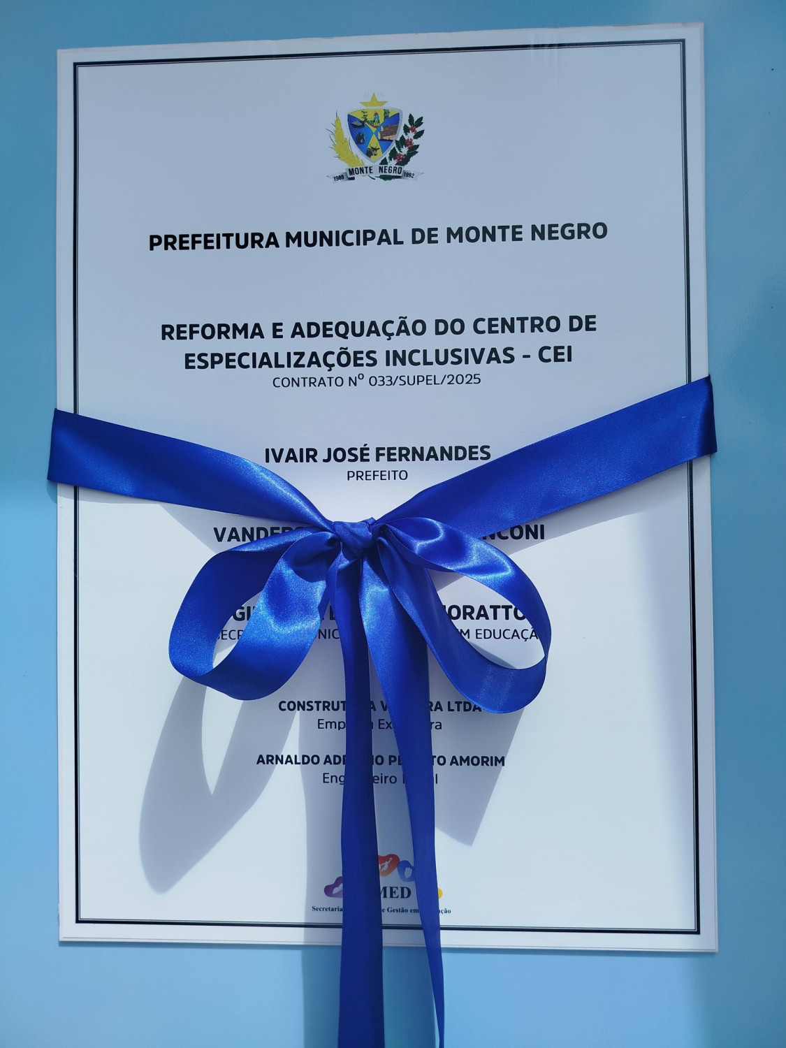 A solenidade de inauguração foi conduzida pelo Prefeito Ivair Ivaír Fernandes juntamente com a Secretária Municipal de Educação, Gilvania Bergamo Moratto, e contou com a presença de diversos vereadores municipais, além dos Deputados Estaduais Alex Redano e Marcelo Cruz, parlamentares parceiros do município que têm contribuído significativamente com Monte Negro por meio de importantes emendas parlamentares.