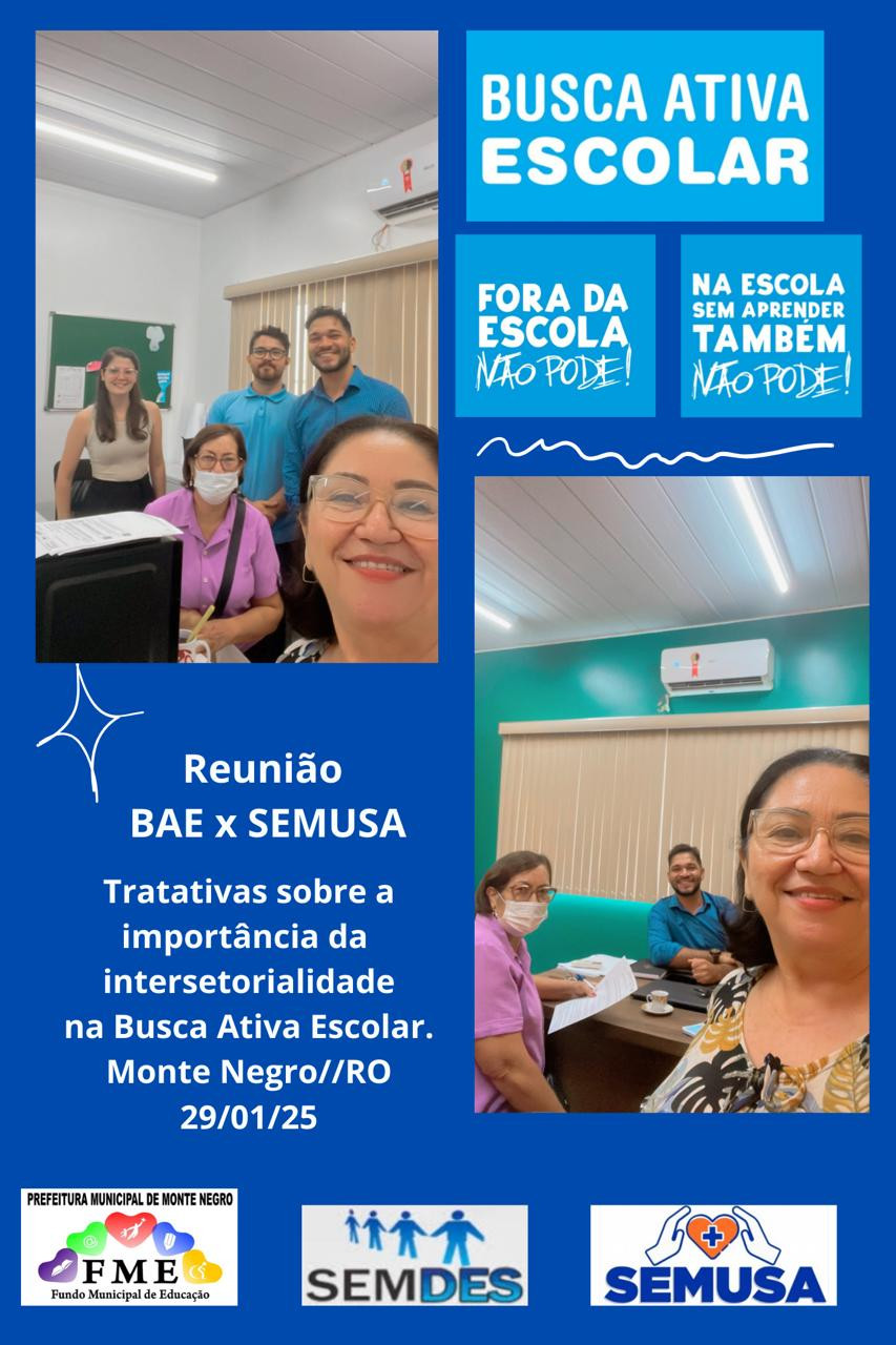 Na última segunda-feira (29/01), a equipe da Busca Ativa Escolar (BAE) reuniu-se com representantes da Secretaria Municipal de Saúde (SEMUSA) para discutir estratégias e fortalecer a intersetorialidade na identificação e reintegração de crianças e adolescentes à escola. O encontro ocorreu no município de Monte Negro/RO e contou com a presença de profissionais da educação e da saúde, reforçando o compromisso conjunto com o direito à educação.