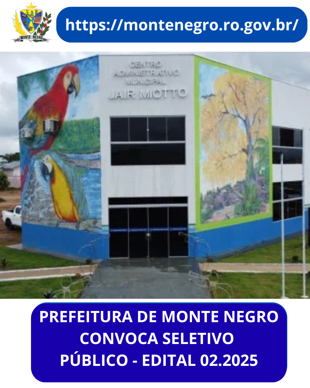 A Prefeitura do Município de Monte Negro, no Estado de Rondônia, por meio de suas atribuições legais, torna pública a convocação dos candidatos aprovados no Processo Seletivo Público – Edital nº 02/2025, conforme normas e critérios estabelecidos no referido edital.