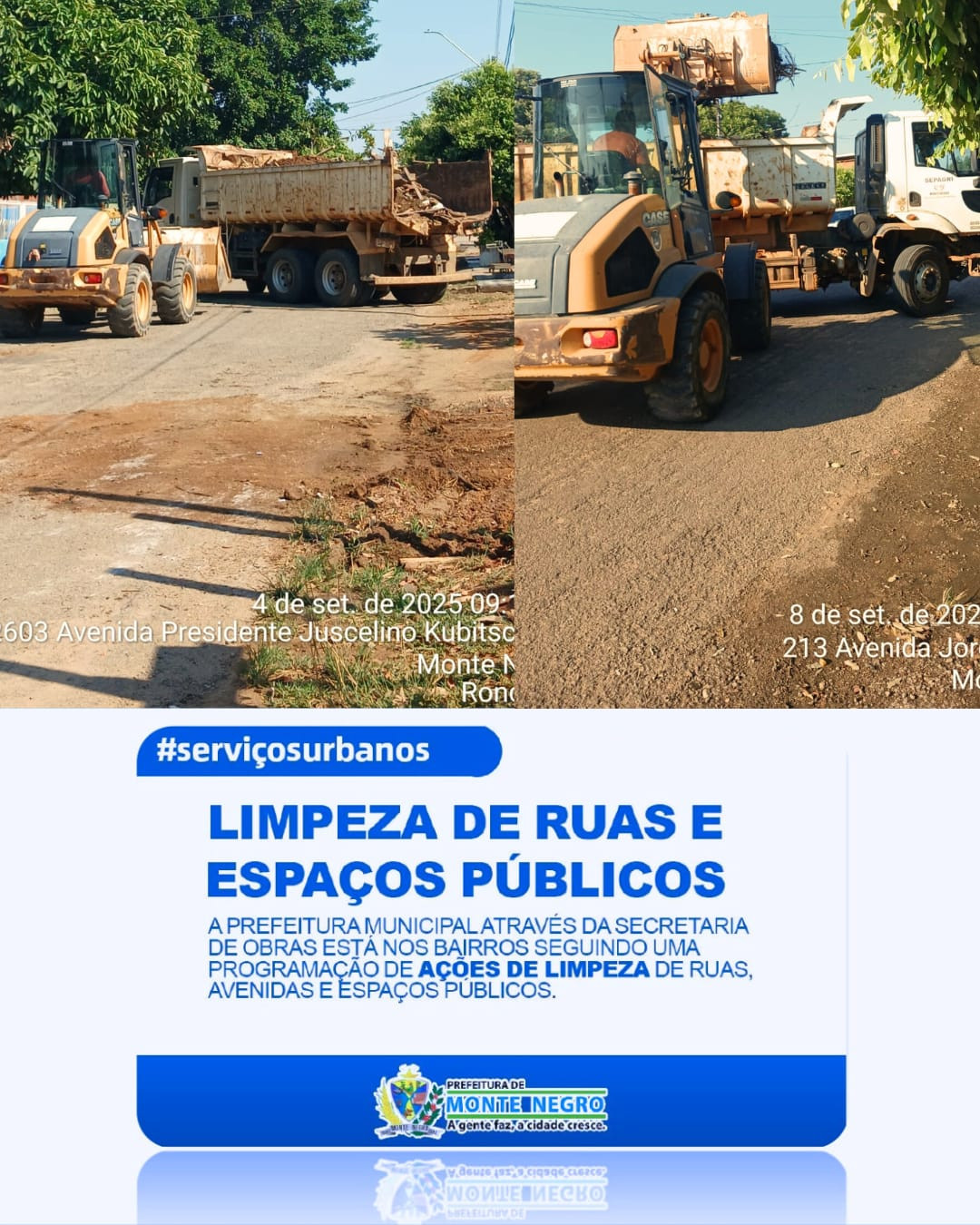 A Prefeitura de Monte Negro, por meio da Secretaria de Obras, está promovendo mutirão de limpeza em toda a cidade.