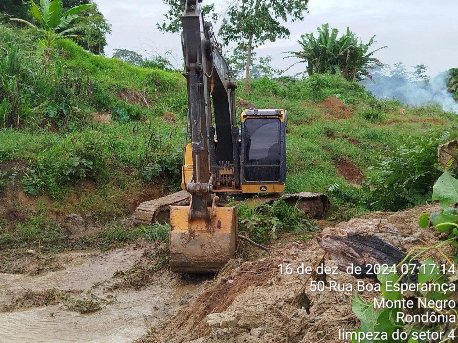 "Prefeitura de Monte Negro Realiza Limpeza do Córrego no Setor 4 para Melhorar Infraestrutura e Qualidade de Vida"