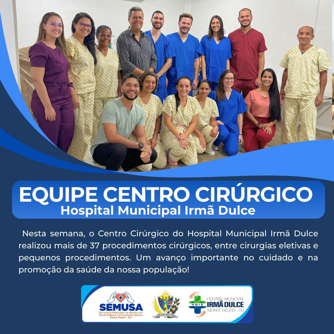 A saúde pública de Monte Negro segue avançando com compromisso e dedicação! Nesta semana, o Centro Cirúrgico do Hospital Municipal Irmã Dulce concluiu mais de 37 procedimentos cirúrgicos, entre cirurgias eletivas e pequenos procedimentos, beneficiando diretamente a população que aguarda por esses atendimentos essenciais.